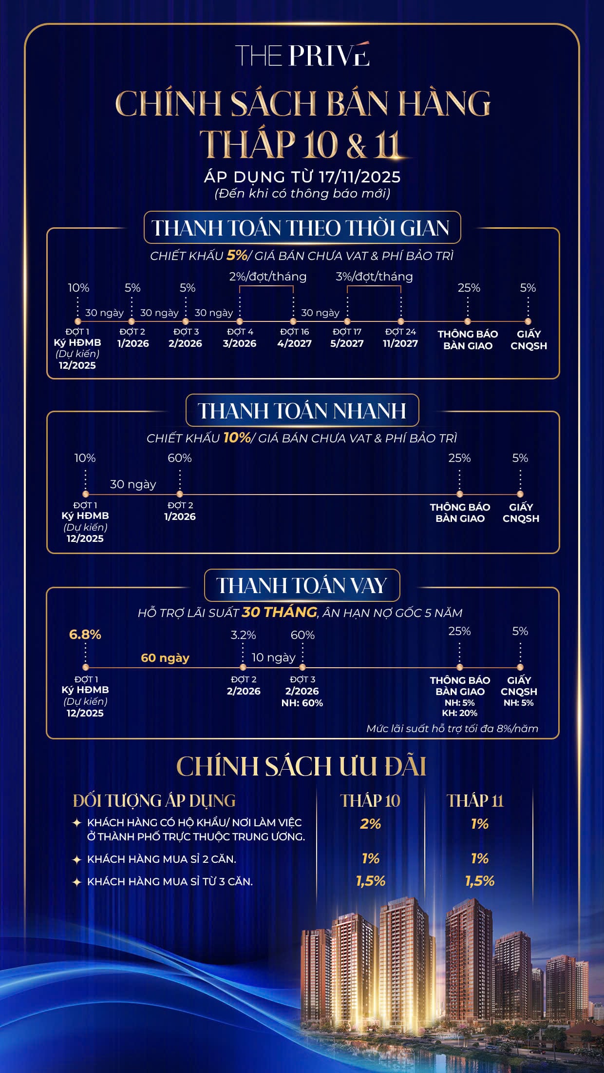 • Đợt 1:  Thanh toán 6,8% ký HĐ Mua Bán