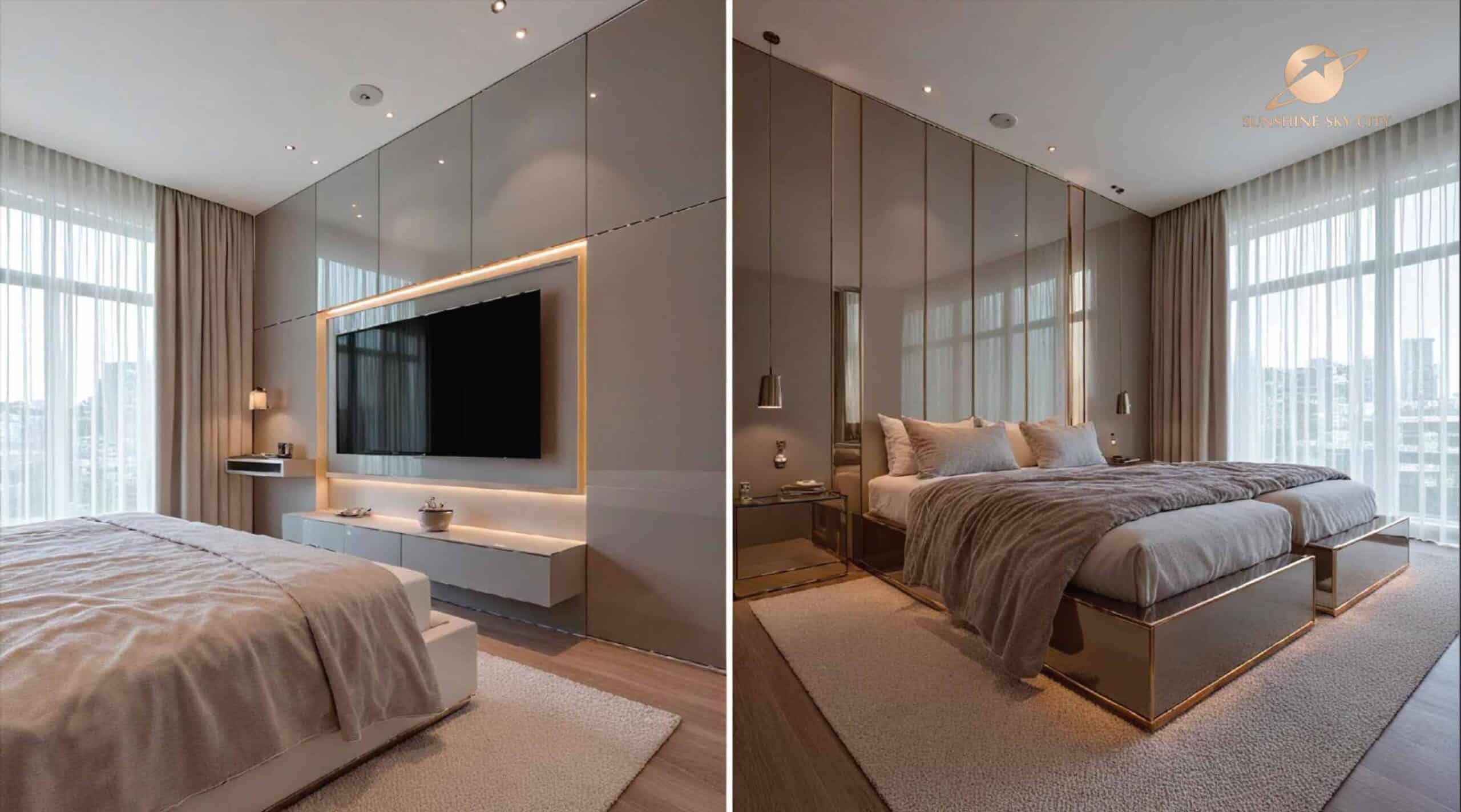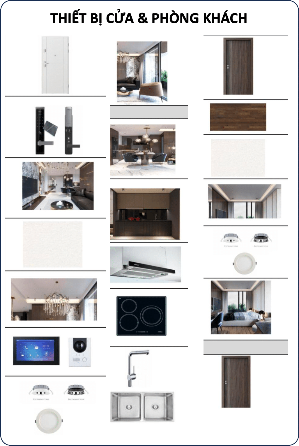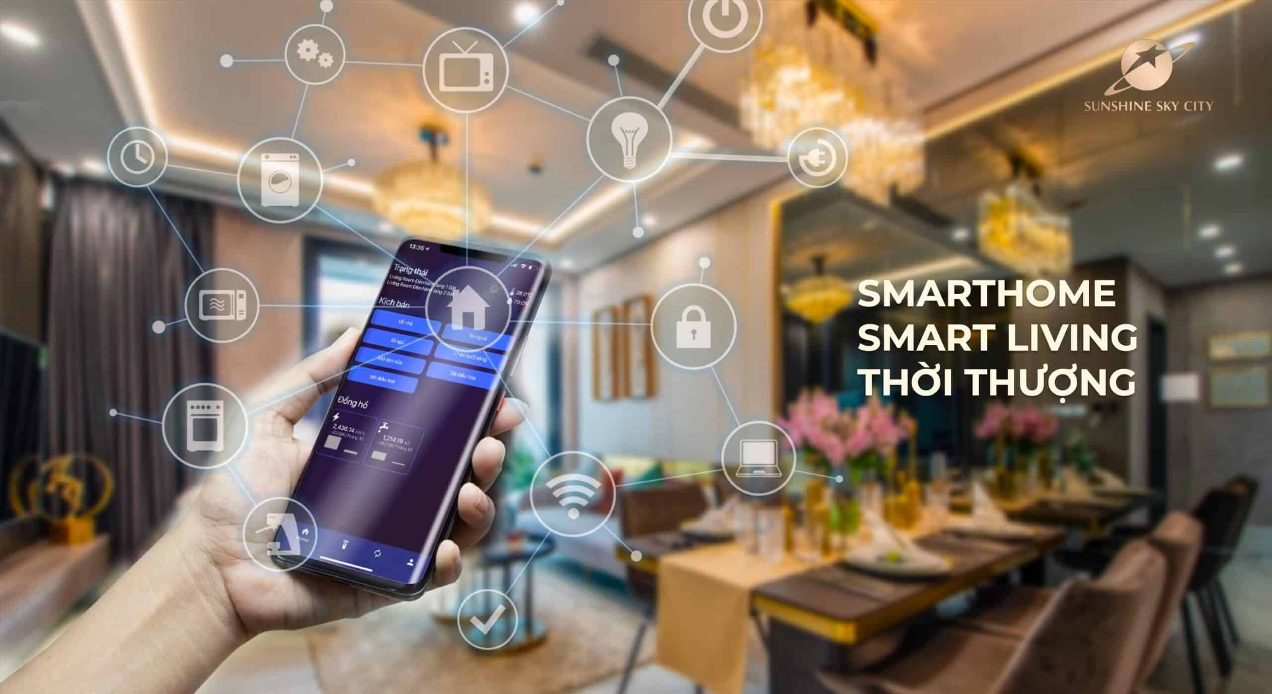 Smart Home Hệ thống Sunshine Smart Living (điều khiển bằng giọng nói tiếng Việt): – Rèm tự động Somfy – Khóa cửa thông minh Kaadas / Dessmann – Camera an ninh hành lang + trong căn hộ – Cảm biến khói, gas, báo cháy tự động