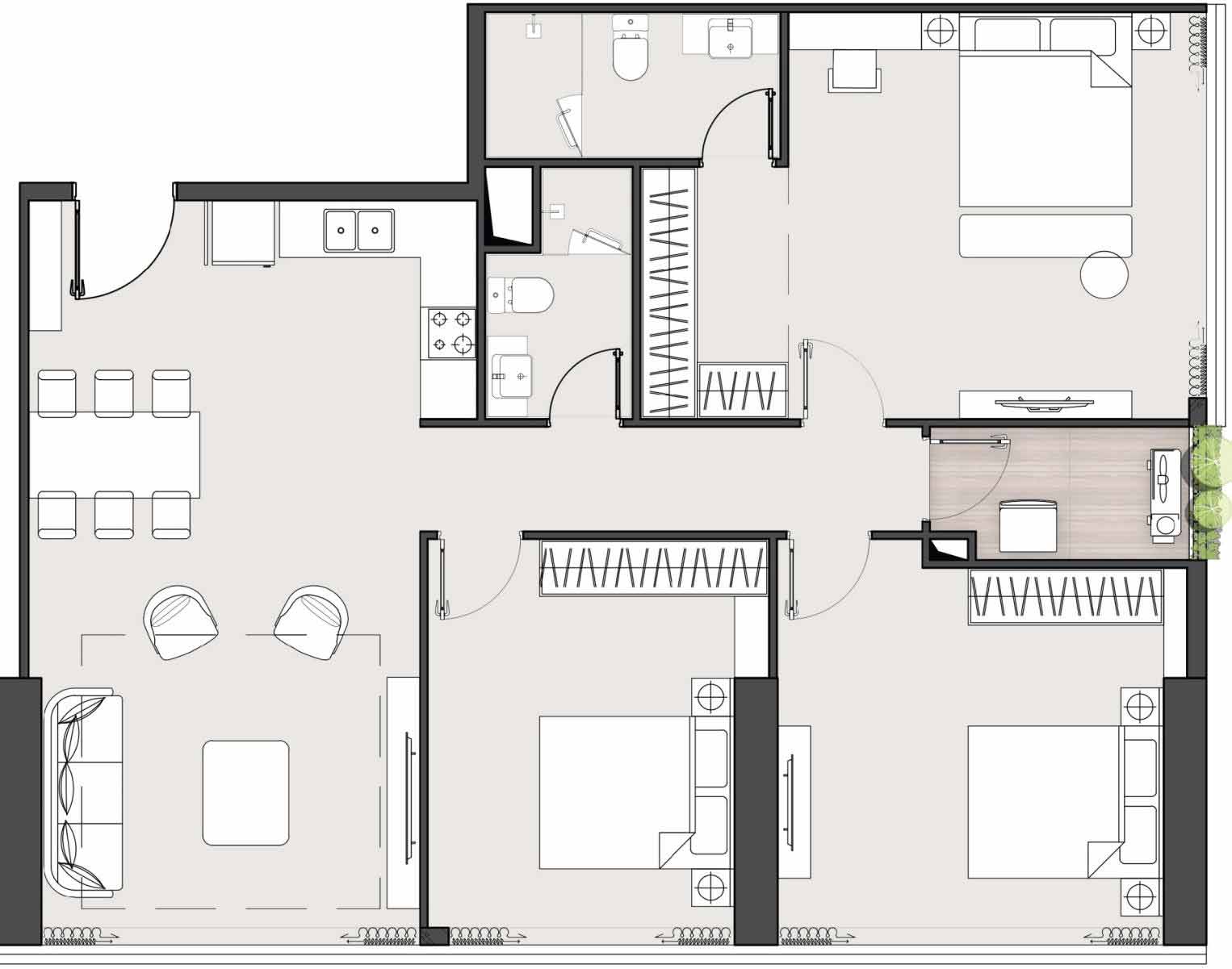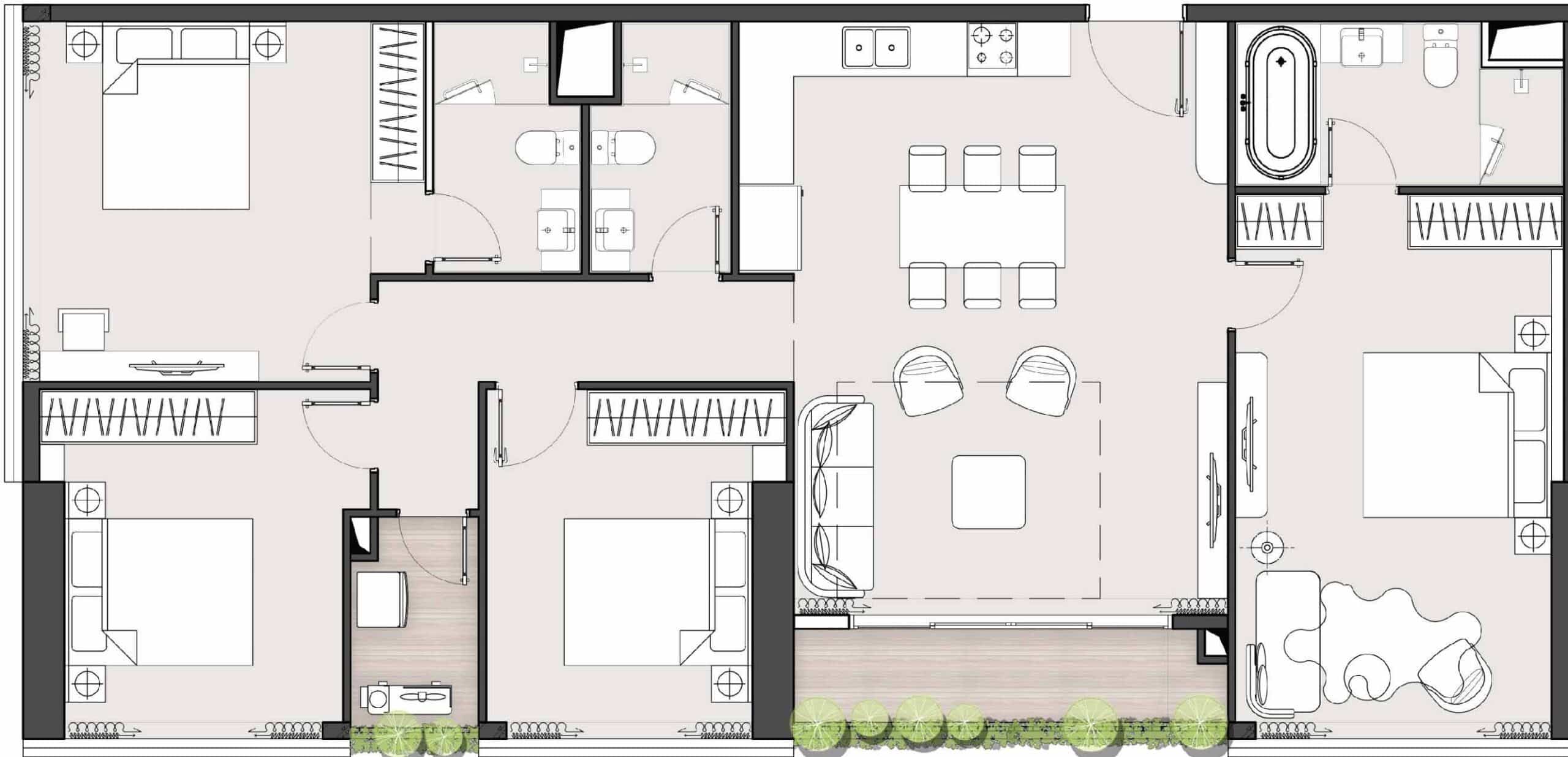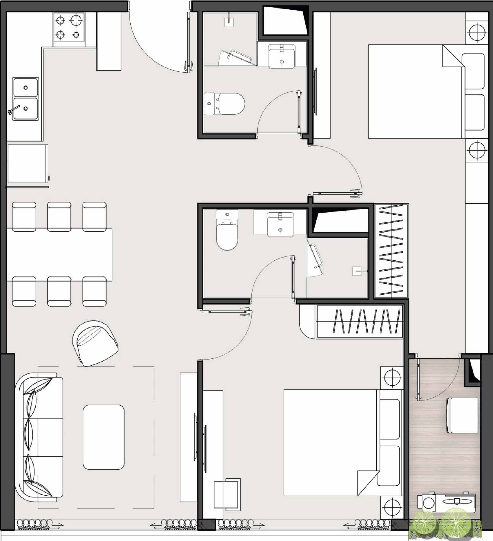 Smart Home Hệ thống Sunshine Smart Living (điều khiển bằng giọng nói tiếng Việt): – Rèm tự động Somfy – Khóa cửa thông minh Kaadas / Dessmann – Camera an ninh hành lang + trong căn hộ – Cảm biến khói, gas, báo cháy tự động
