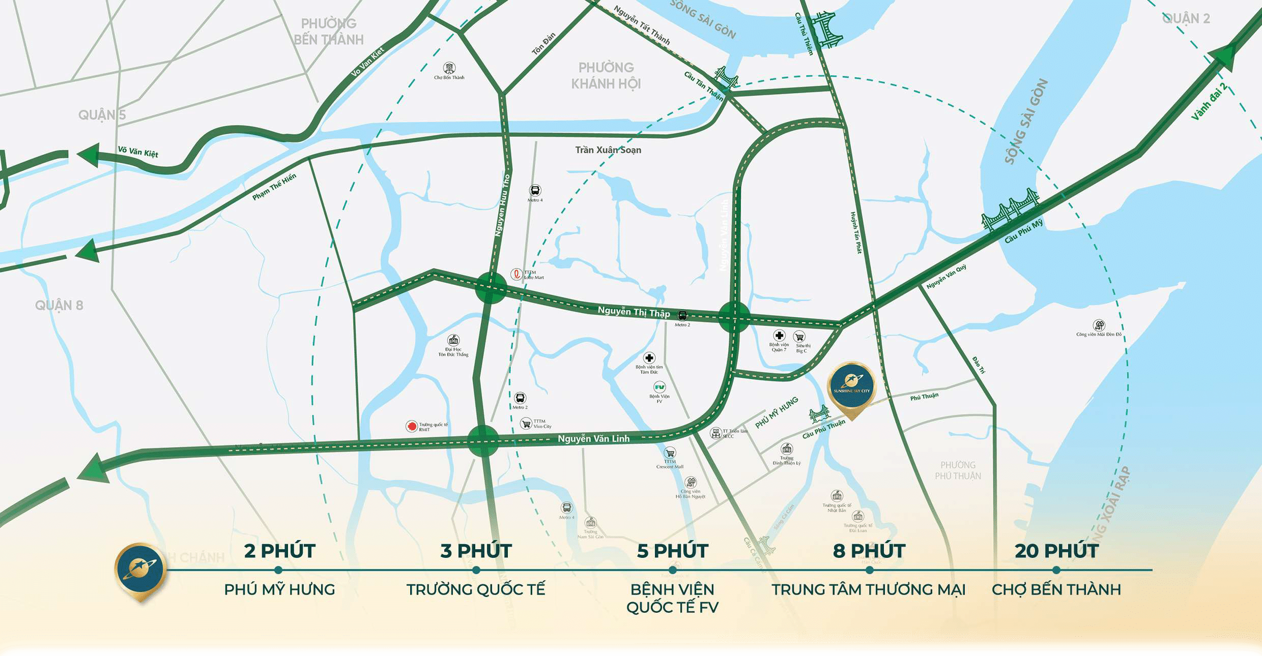 Tọa lạc ngay vị trí mặt tiền đường Phú Thuận, phường Tân Mỹ với vị thế “tam cận” đắc địa “Nhất cận thị, nhị cận giang, tam cận lộ”, kế cận sông Cả Cấm, liền kề Phú Mỹ Hưng. Phân khu Thịnh Vượng tại Sunshine Sky City thừa hưởng toàn bộ chuẩn mực sống quốc tế, quy tụ cộng đồng chuyên gia, doanh nhân quốc tế, hệ thống trường học và bệnh viện quốc tế